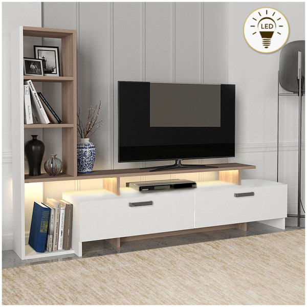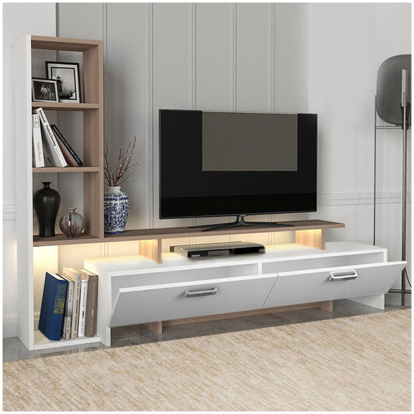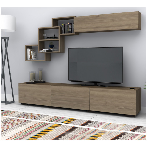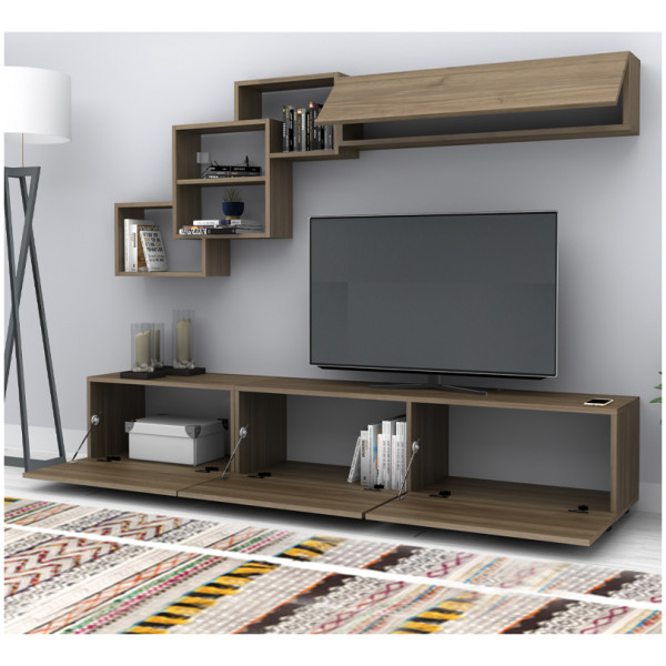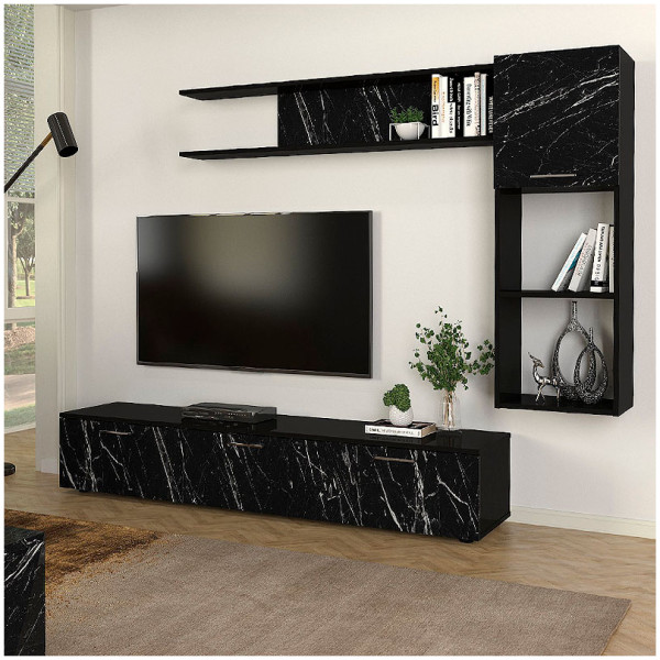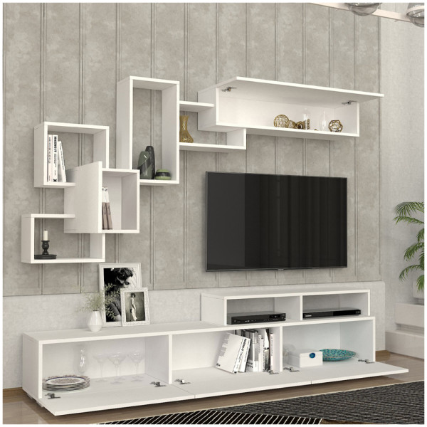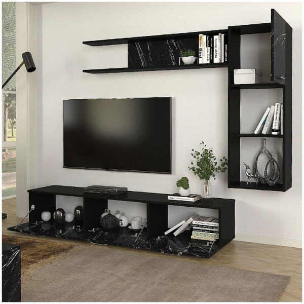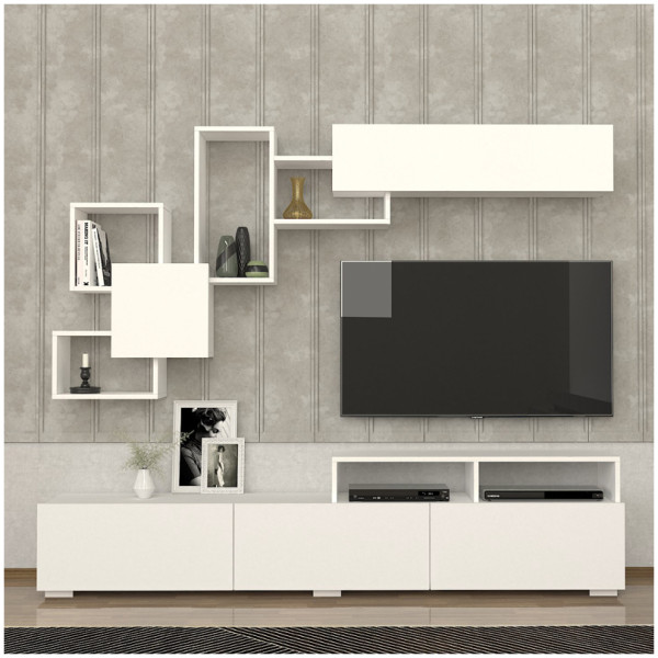 • Η σύνθεση αποτελείται από ένα έπιπλο τηλεόρασης, μία ραφιέρα τοίχου και ένα οριζόντιο μονόφυλλο ντουλάπι.
