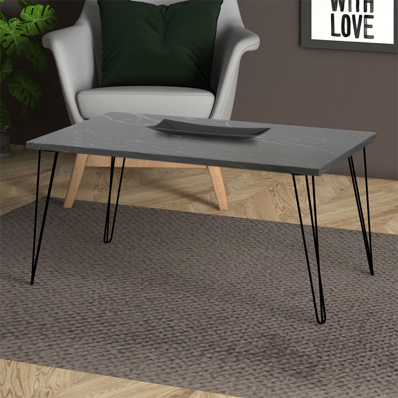 Τραπεζάκι σαλονιού Fiona χρώμα μαύρο εφέ μαρμάρου 90x55x43εκ.