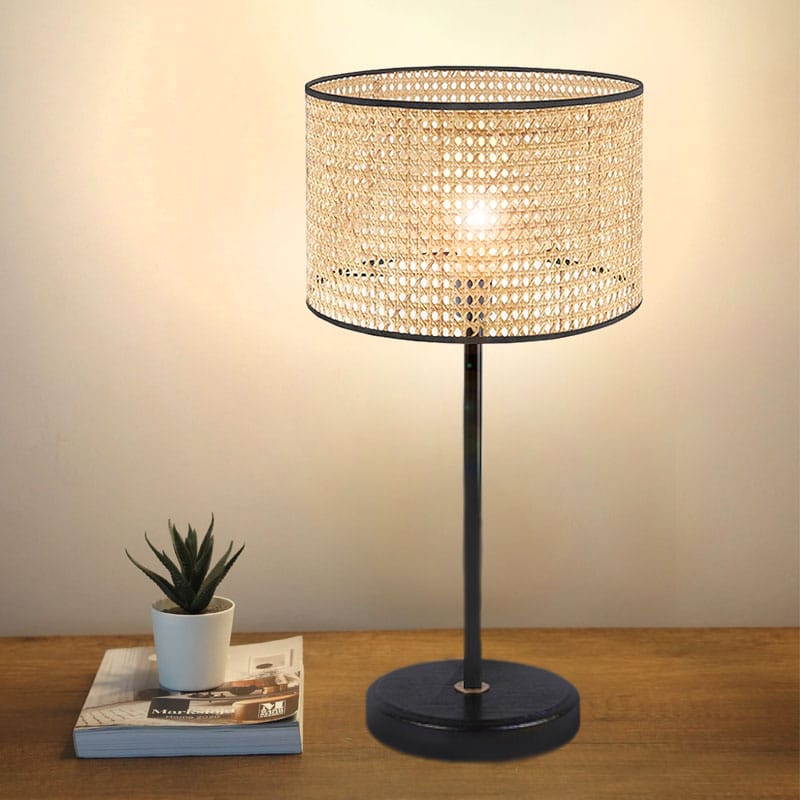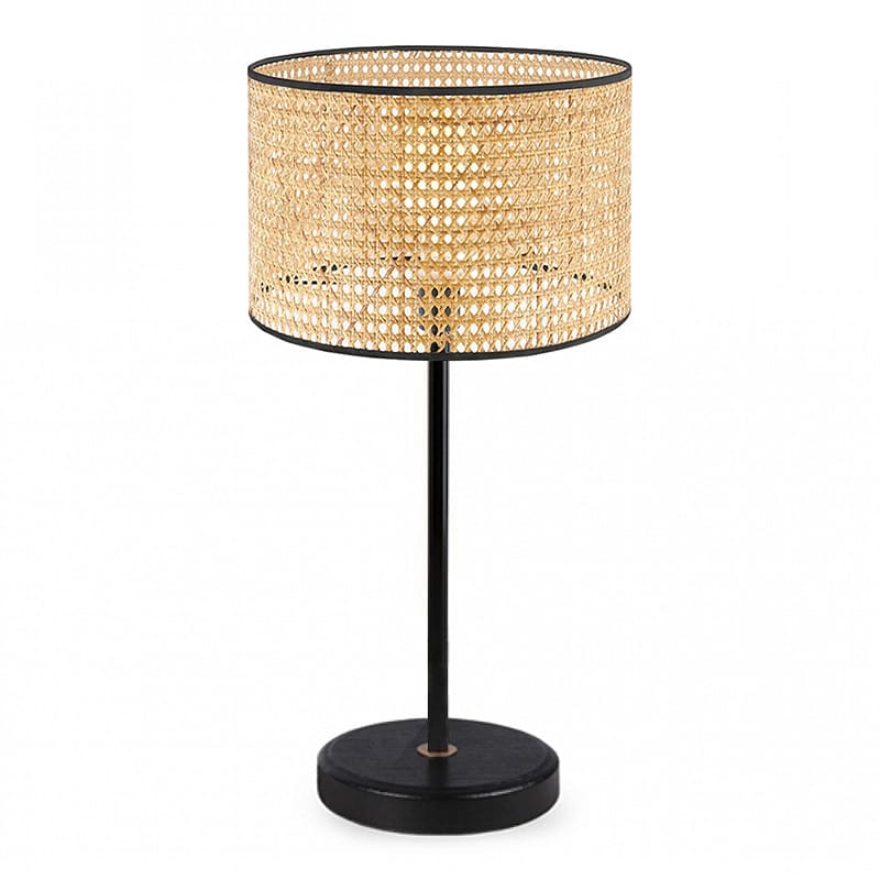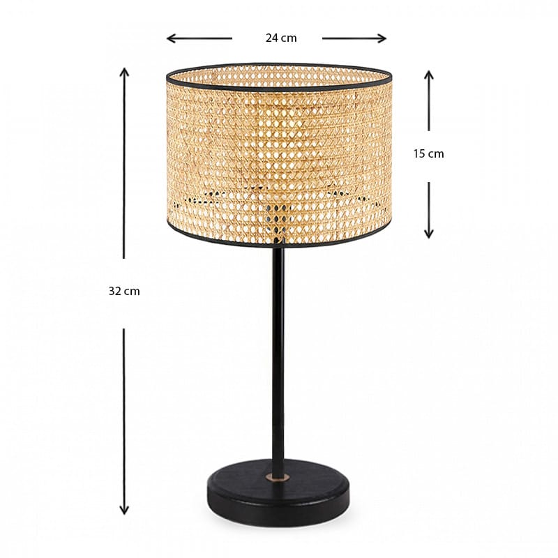 Φωτιστικό επιτραπέζιο Idaho E27 ρατάν – μεταλλικό χρώμα φυσικό – μαύρο Φ24×32εκ.