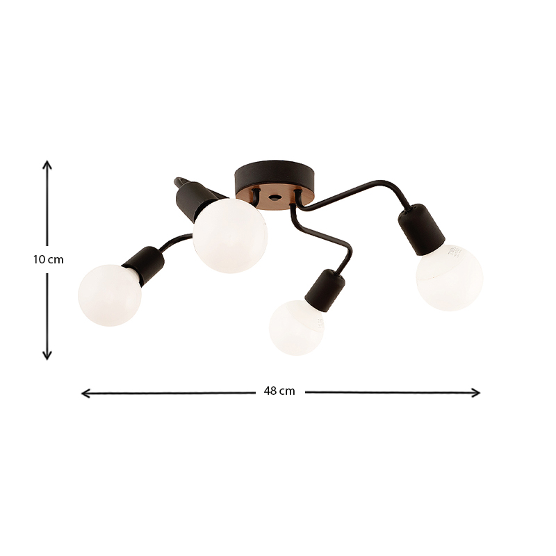 • Φέρει θέση για τέσσερις λαμπτήρες Ε27, ο οποίοι δε συμπεριλαμβάνονται στη συσκευασία.